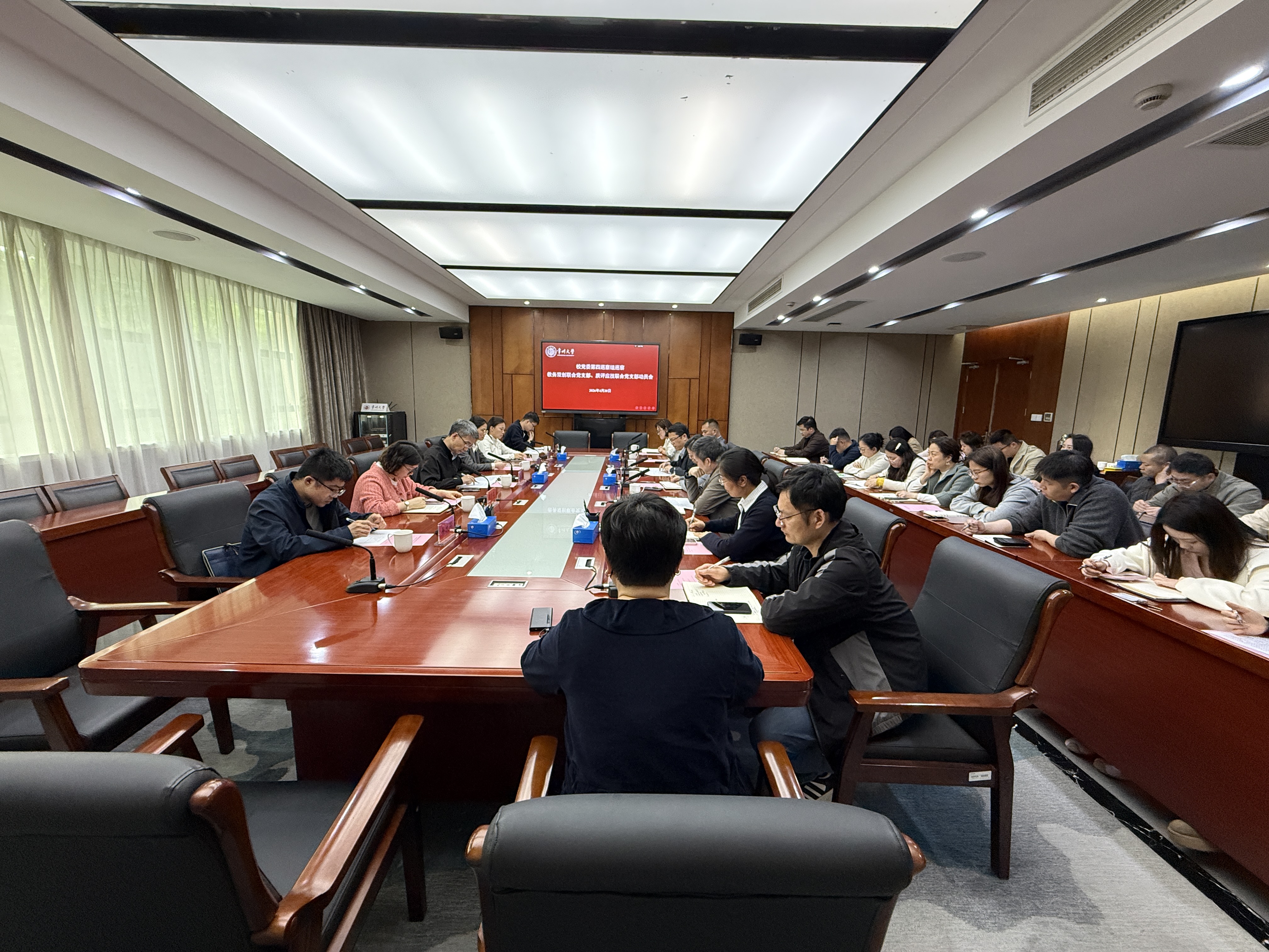 根据校党委统一部署,2026年4月20日,党委第四巡察组巡察教务双创联合党支部、质评应技联合党支部工作动员会召开。会上,党委第四巡察组组长潘勇作了动员讲话,对做好巡察工作提出明确要求...